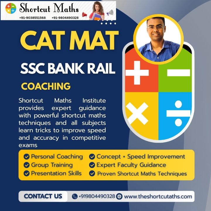 Shortcut Maths, established since 2011 and located opposite KPC Medical College in Kolkata, offers personalized coaching with time-saving shortcuts and innovative teaching methods. Our exceptional instructors focus on helping students master quick calculations and problem-solving techniques. We provide preparation for various exams, including CAT, MAT, XAT, SSC, BANK, RAIL, WBCS, and more. Through online and offline classes, regular assessments, and personalized feedback, Shortcut Maths aims to help learners excel in competitive exams and develop a deep understanding of mathematics.
